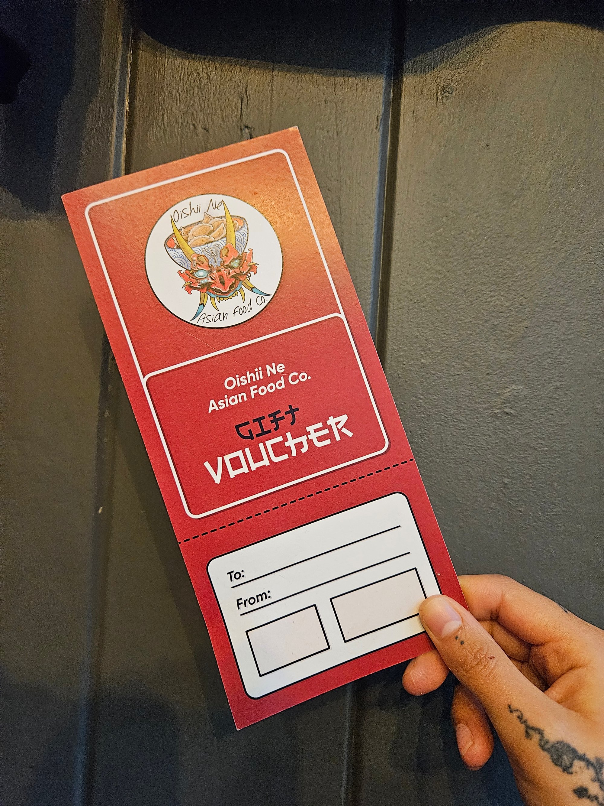 Oishii gift voucher to be used in store. + can be used in our regular opening hours on food and drink × cannot be used on merch items or evening services + To be used within a year of purchase.